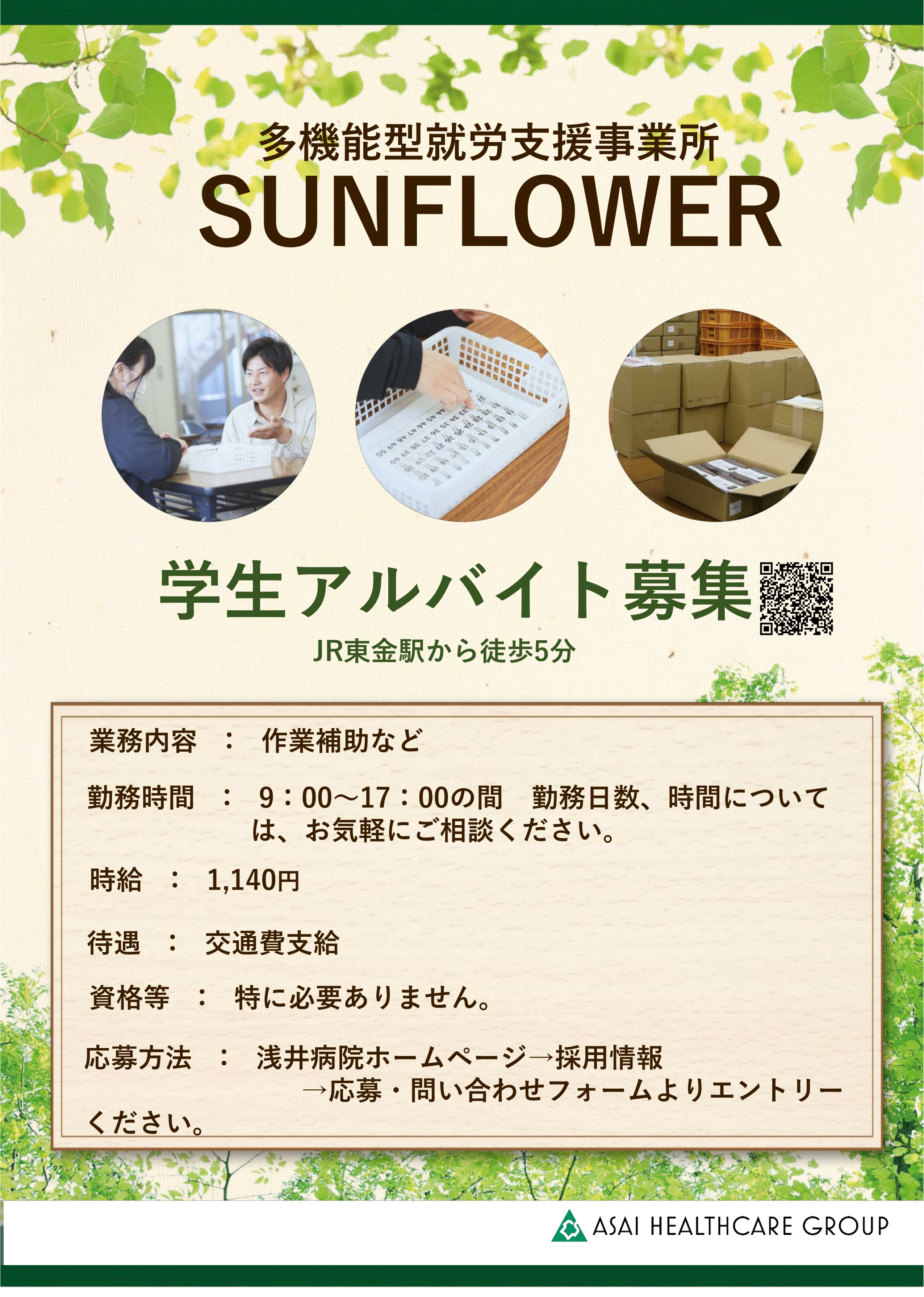 精神科デイケアと、多機能型就労支援事業所SUNFLOWERでは、学生アルバイトを募集しています。