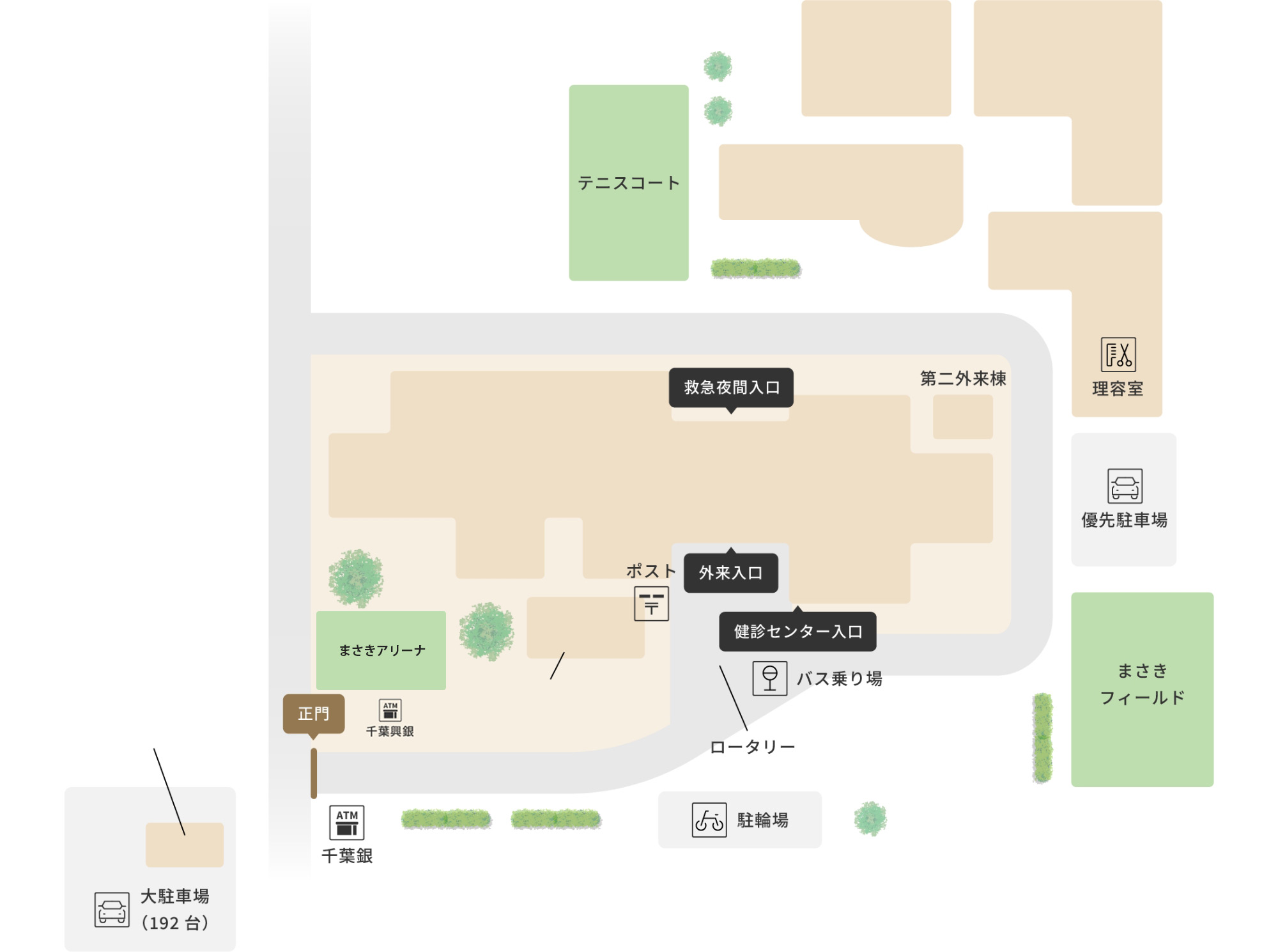 病院正門入口横…千葉銀行(正門を出て左横)