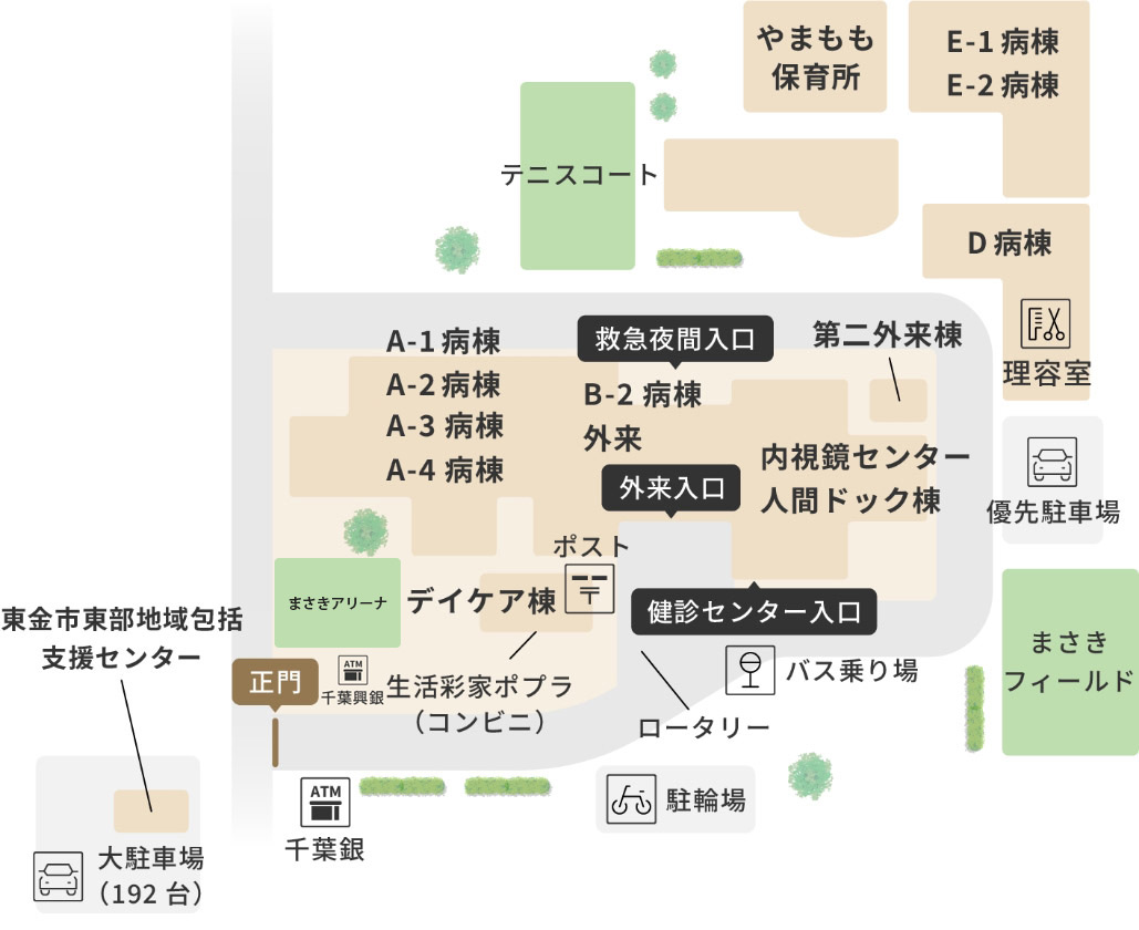 ※付近にタクシー専用電話(無料)も設置しております。 - ・夜間救急入口(B棟1階)