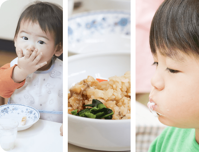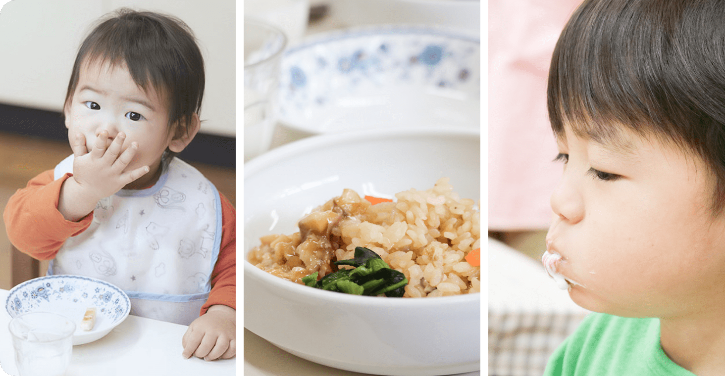 管理栄養士・調理師が子どもの成長に合わせた離乳食・乳児食・幼児食を保育所内の調理室で手作りしています。