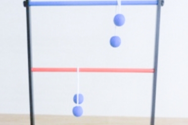 ヒモでつながっている2個のボールをラダー(ハシゴ)に向かって投げ、ボールがラダーに引っ掛かる(ハングする)と得点となるゲームです。